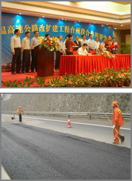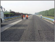 在本工程中我公司承擔了橡膠瀝青應力吸層的施工,共攤鋪橡膠瀝青應力吸收層3.5萬平方米,施工質量得到業主好評。